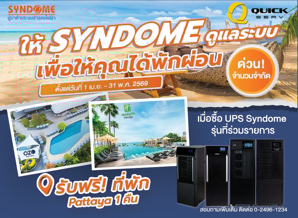 เมื่อซื้อ UPS Syndome รุ่น 6K และ 10K วันนี้ รับดีลสุดคุ้ม ฟรี! ที่พักพัทยาสุดชิล 1 คืน รีบด่วน...สิทธิ์มีจำนวนจำกัด