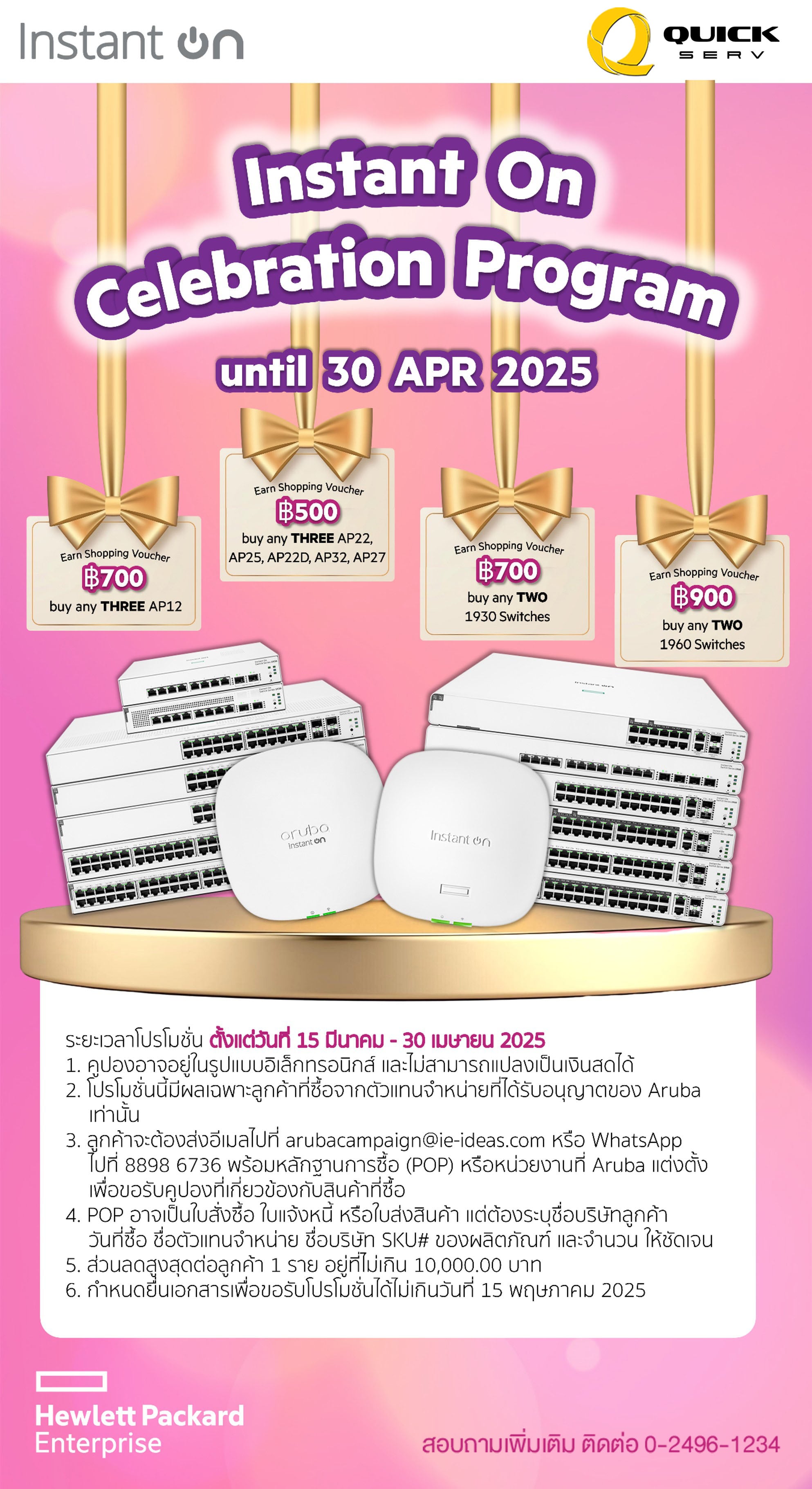 Aruba Instant On Celebration Program ฟรึ! Voucher มูลค่าสูงสุด 10,000 บาท