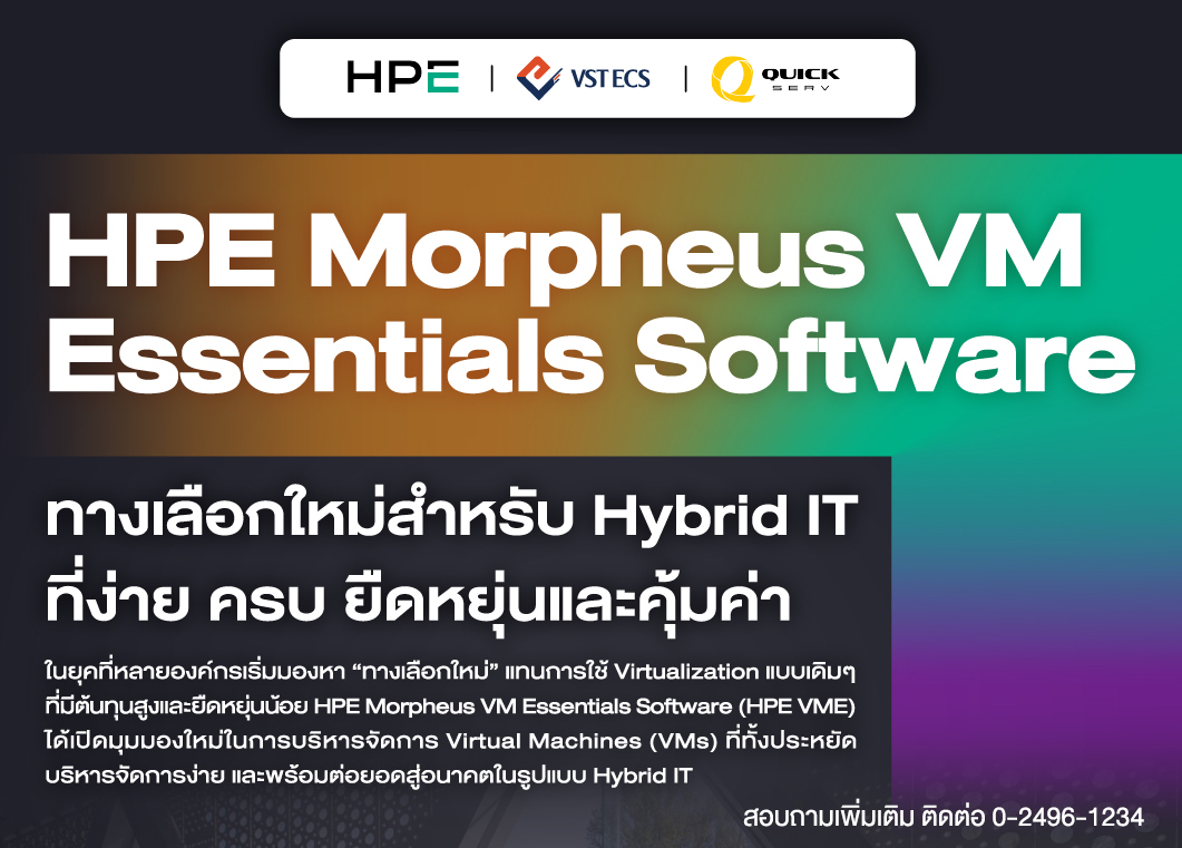 ในยุคที่หลายองค์กรเริ่มมองหา "ทางเลือกใหม่" แทนการใช้ Virtualization แบบเดิม ๆ ที่มีต้นทุนสูงและยืดหยุ่นน้อย HPE Morpheus VM Essentials Software (HPE VME) ได้เปิดมุมมองใหม่ในการบริหารจัดการ Virtual Machines (VMs) ที่ทั้งประหยัด บริหารจัดการง่าย และพร้อมต่อยอดสู่อนาคตในรูปแบบ Hybrid IT
