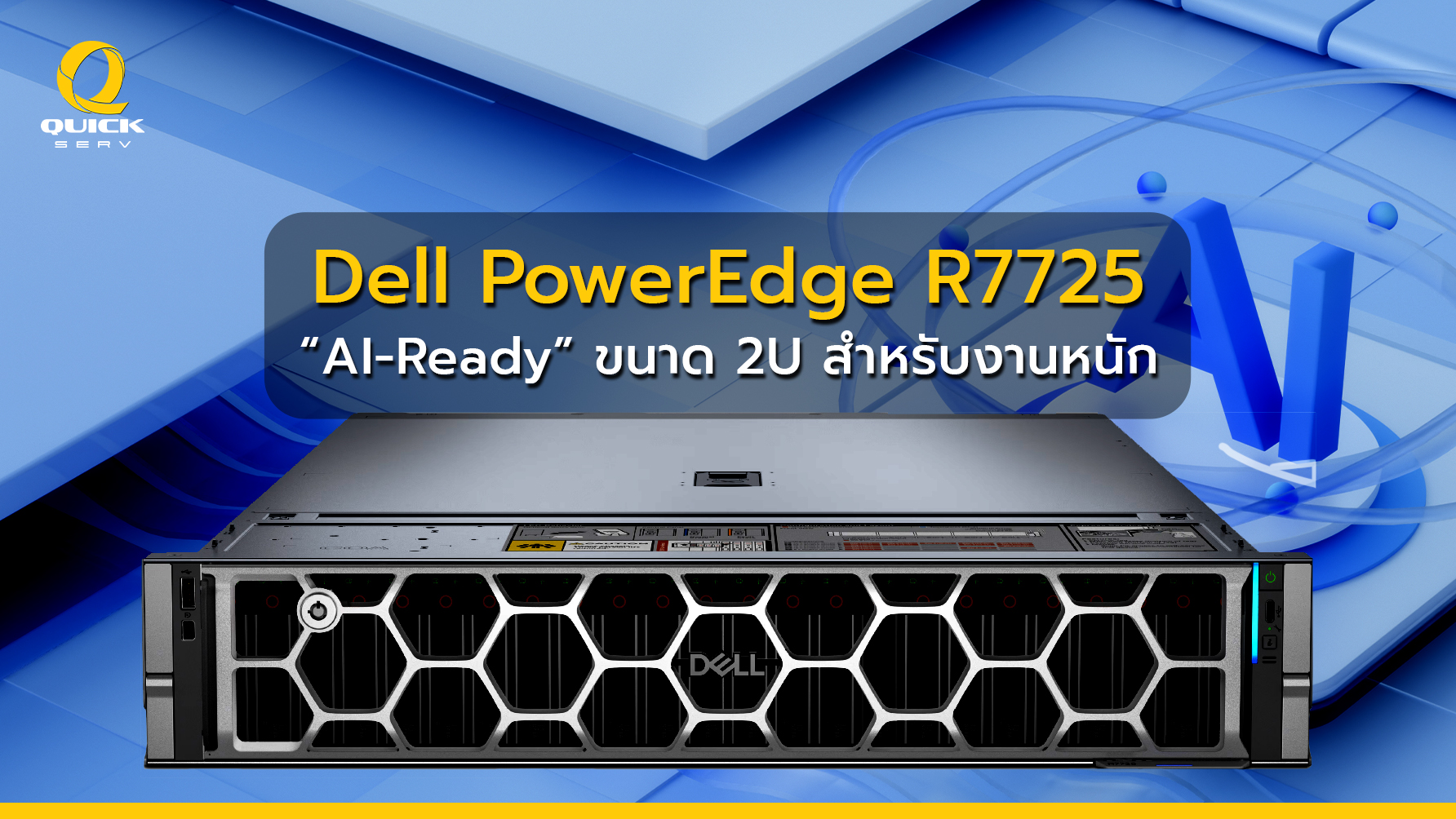 • Dell PowerEdge R7725 AI Ready เซิร์ฟเวอร์ขนาด 2U สำหรับงานหนัก