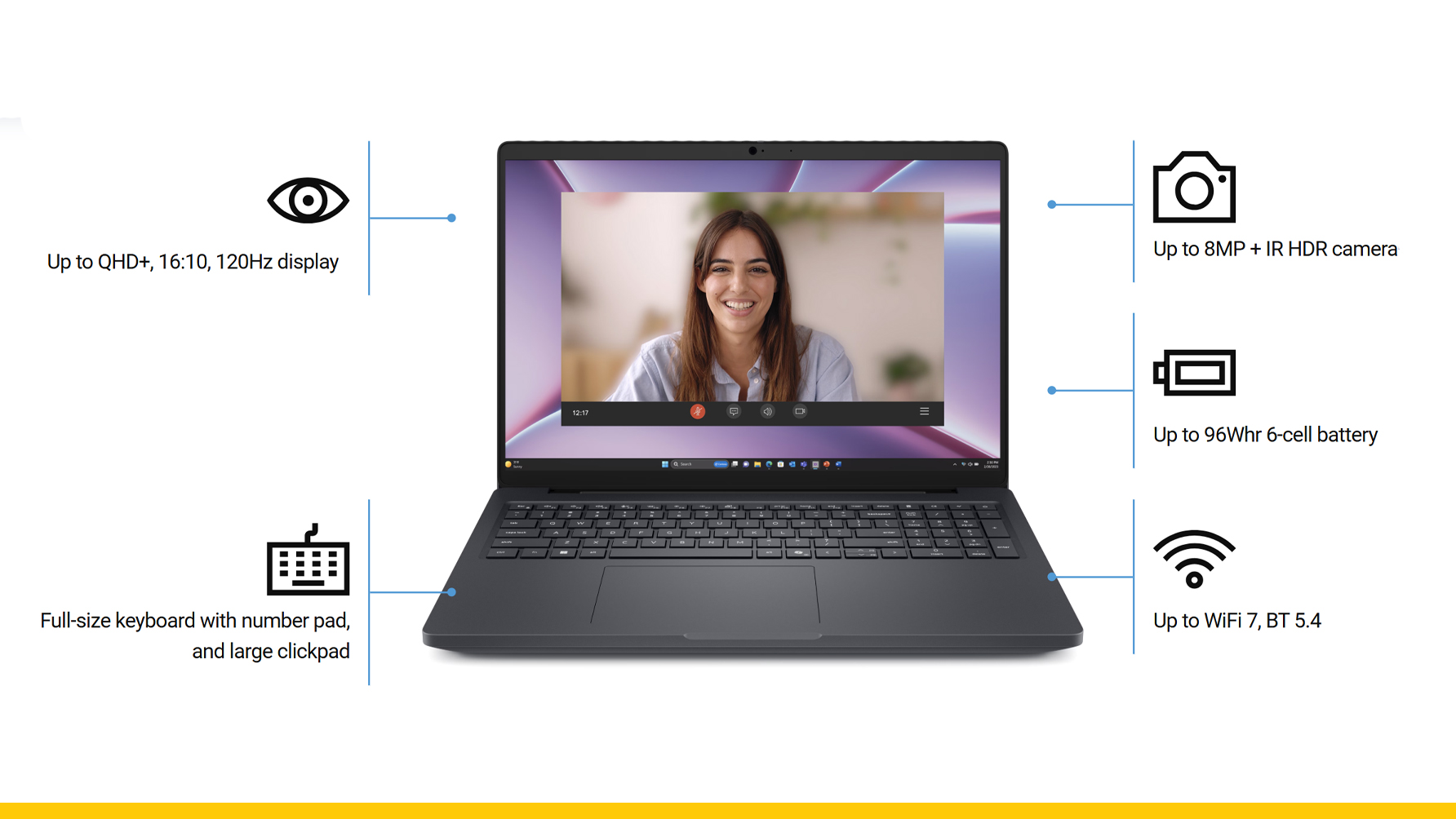 Dell Pro Max 16 มาพร้อมหน้าจอขนาด 16 นิ้ว สัดส่วน 16:10 ที่ให้พื้นที่การทำงานมากกว่ารุ่นทั่วไป มีให้เลือกตั้งแต่ความละเอียด FHD+ ไปจนถึง QHD+ 120Hz
