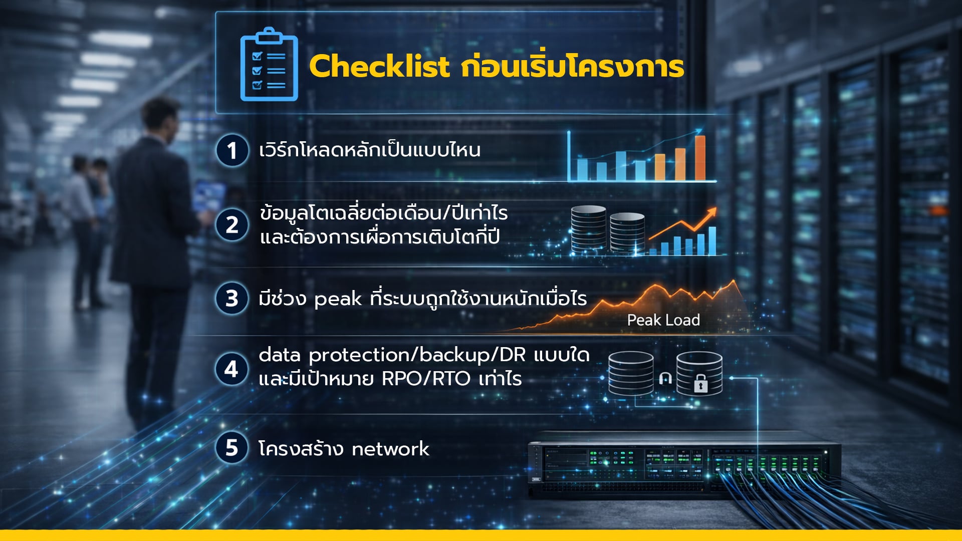 • ประเมินเวิร์กโหลดและหา “คอขวด” ของระบบเดิม