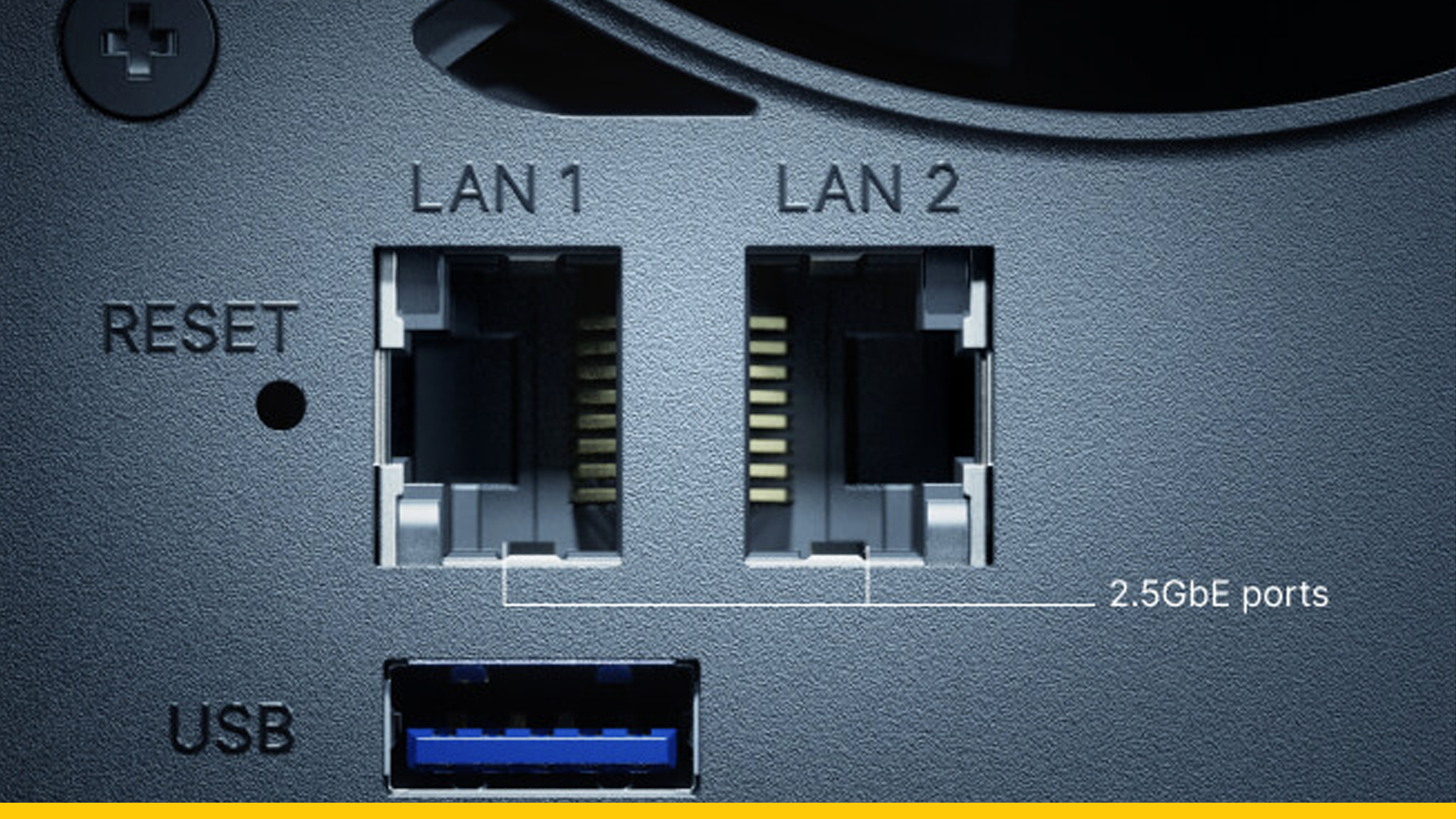 •  เครือข่ายทันสมัย: มาพร้อมพอร์ต 2.5GbE จำนวน 2 พอร์ต รวมพอร์ต (Link Aggregation) เพื่อเพิ่มแบนด์วิธ หรือทำ Failover ได้ทันที