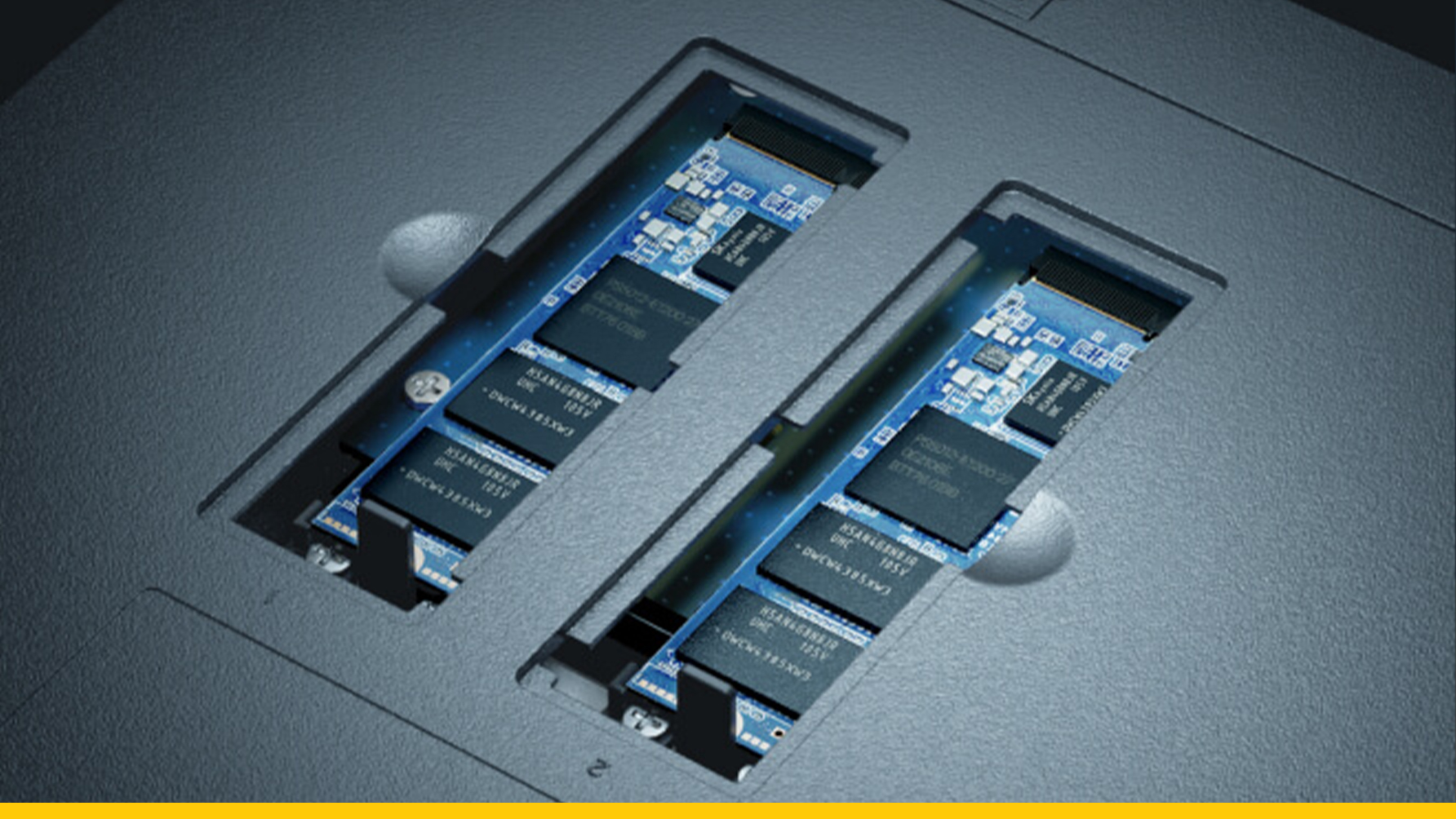 •  ยืดหยุ่นด้านสตอเรจ: รองรับ HDD/SSD ทั้ง 3.5” และ 2.5” พร้อมสล็อต M.2 NVMe 2280 จำนวน 2 ช่อง สำหรับทำ SSD Cache หรือ SSD Pool