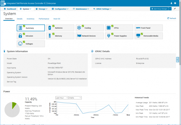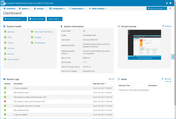 iDRAC 9 ซึ่งเป็นรุ่นใหม่ของ Dell จัดว่าเป็นเครื่องมือการจัดการจากระยะไกลที่ยอดเยี่ยม ด้วย HTML5-based web interface ที่นำสมัย โดยการแสดงถึงข้อมูลการดำเนินงานที่แท้จริงของเซิฟเวอร์ ที่เกี่ยวกับส่วนต่างๆ ในส่วนของDashboard ที่แสดงสถานภาพโดยรวมของระบบ พร้อมการเข้าสู่การบันทึกข้อมูลได้อย่างรวดเร็ว และยังสามารถเปิดตัว virtual console สำหรับการควบคุมได้ในระยะไกล