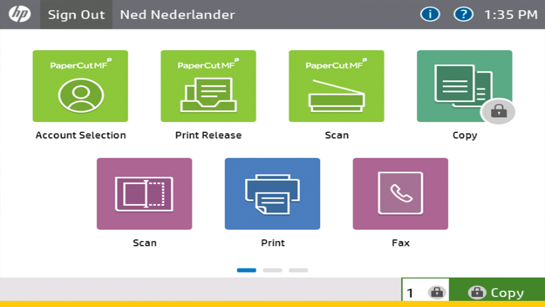 ผลลัพธ์เมื่อใช้ HP + PaperCut MF + HP SDS:
