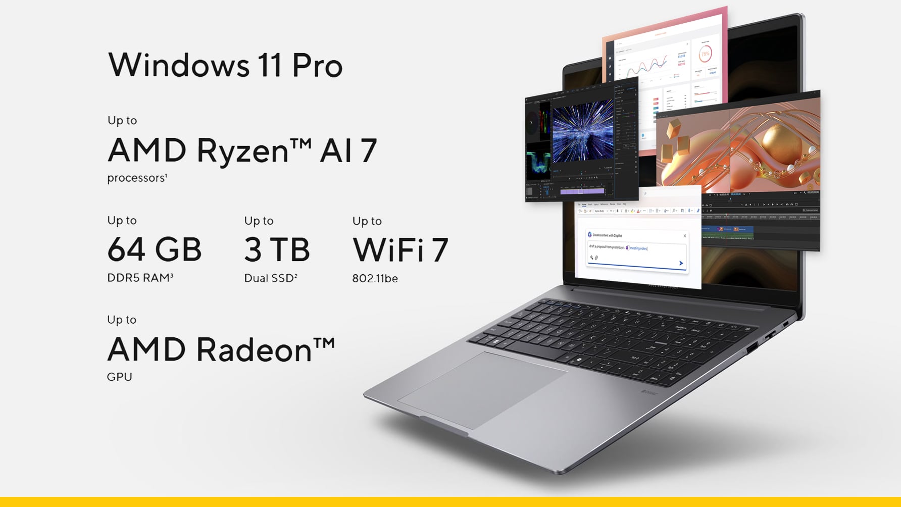 •  AI พร้อมใช้จริง: AMD Ryzen™ AI 7 350 / AI 5 330 พร้อม NPU สูงสุด 50 TOPS เพื่อเร่งงาน AI แบบออฟไลน์ (on-device) และ Microsoft Copilot