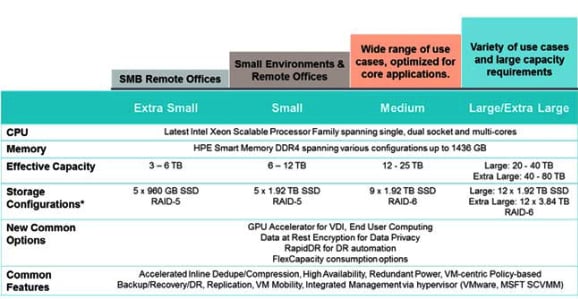 | Storage | Two All Flash Storage Options (4000/6000 Series) and 5 Capacity Points: |