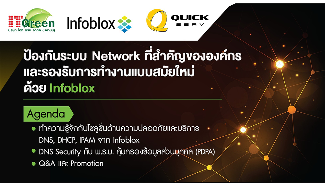 Quickserv ร่วมเปิดประสบการณ์ใหม่ในงานสัมมนา SMART AND SECURE Transforming Healthcare IT ณ จังหวัดสุพรรณบุรี โดยวิทยากรผู้เชี่ยวชาญจาก แบรนด์ชั้นนำ อาทิ เช่น Bitdefender , Cisco , ที่จะมาแบ่งปันความรู้และแนวคิดในการยกระดับระบบ IT ด้านสุขภาพให้ทันสมัย พร้อมทั้งเสริมสร้างความปลอดภัยให้กับข้อมูลและการดำเนินงานขององค์กร -
