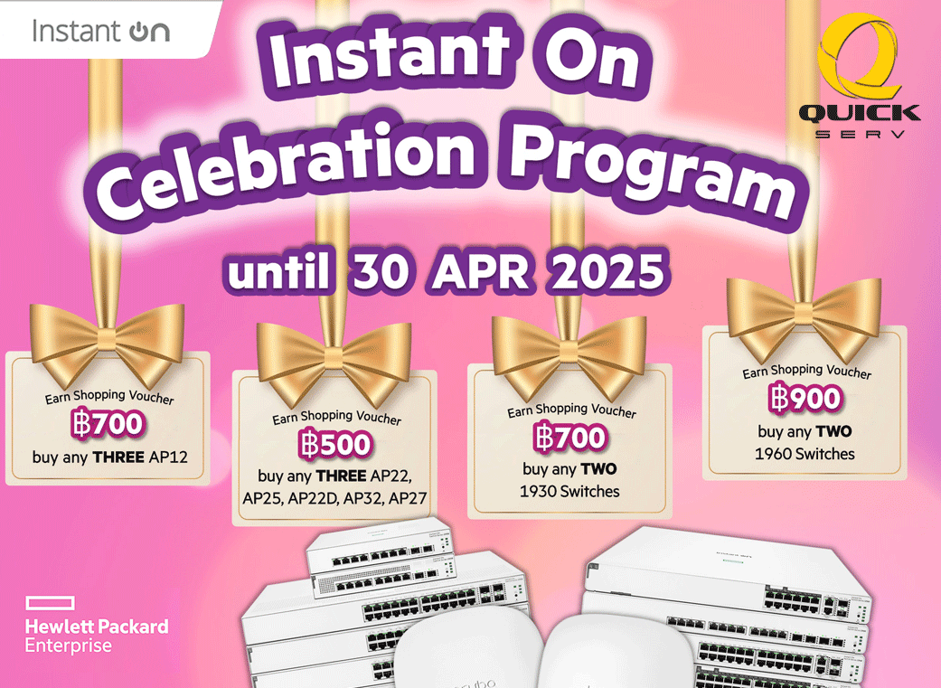 Instant On Celebration Program!! เมื่อซื้อสินค้า Aruba ไม่ว่าจะเป็น Access Point หรือ Switch รุ่นที่ร่วมรายการ รับฟรี! Earn Shopping Voucher มูลค่าสูงสุด 10,000 บาท
