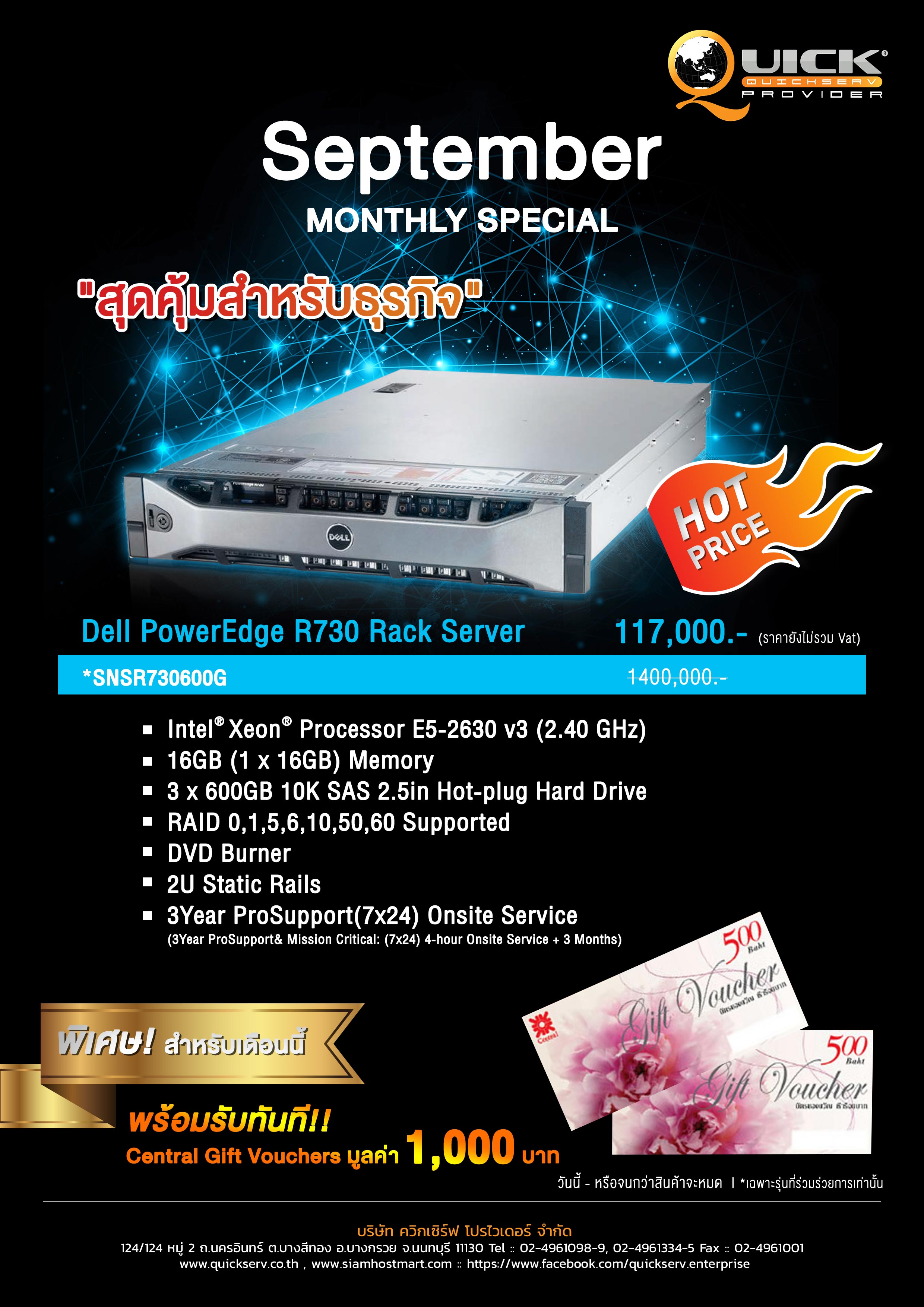 Dell PowerEdge R730 ราคาพิเศษ รับทันที! Gift Voucher มูลค่า 1,000 บาท