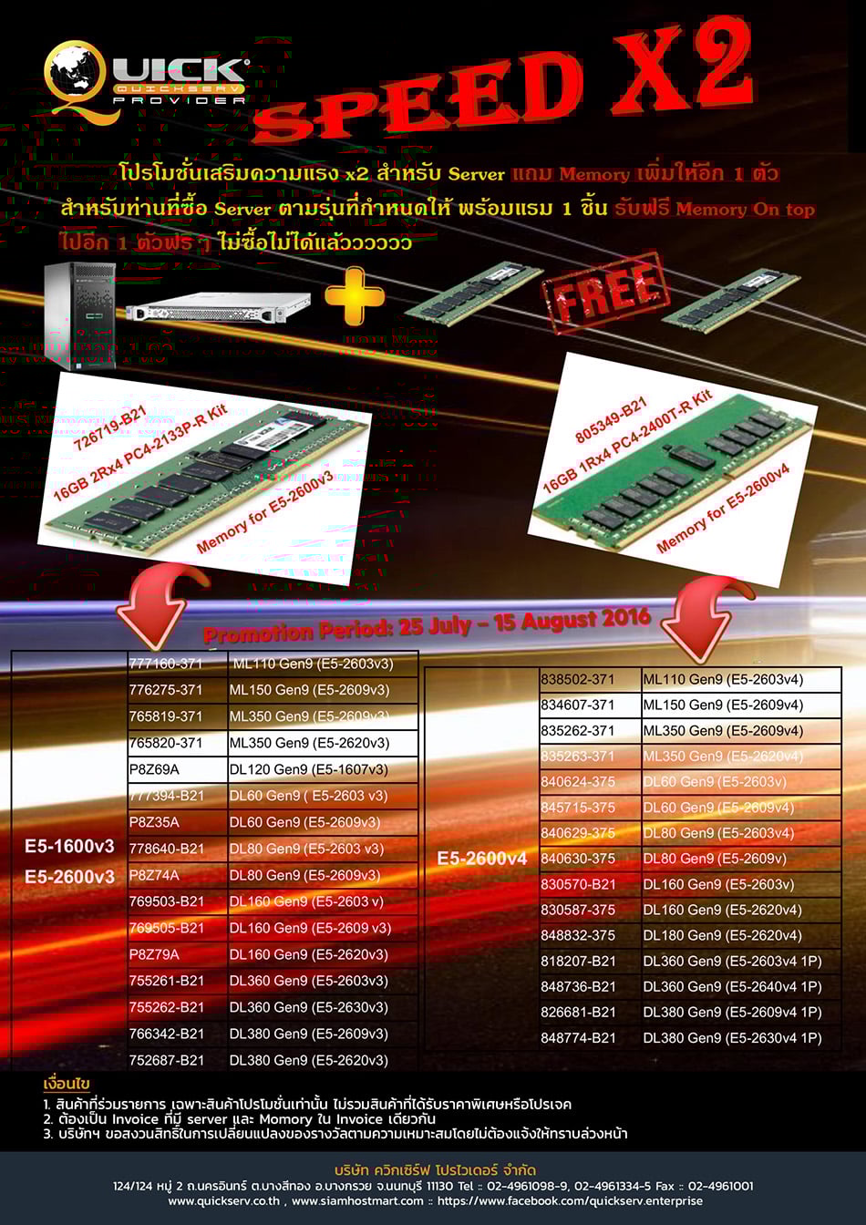 เมื่อซื้อ Hero Model อย่าง HPE ProLiant DL360 Gen 9 และ DL380 Gen 9 Server พร้อม Warranty 3 Years 24x7 ในราคาสุดคุ้ม อย่ารอช้า เพราะสินค้ามีจำนวนจำกัด