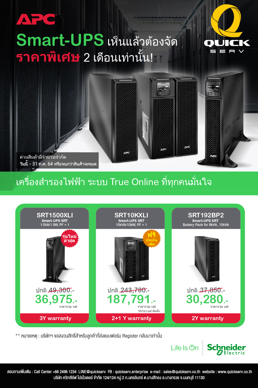 APC เครื่องสำรองไฟฟ้า ระบบ True Online ราคาพิเศษ ฟรีประกันเพิ่มอีก 1ปี