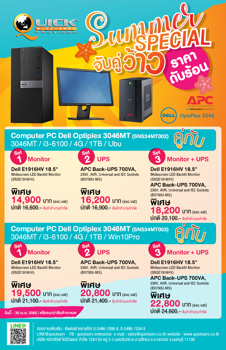 Promotion จับคู่ว้าว!! ราคาดับร้อน Computer PC Dell Optiplex 3046MT