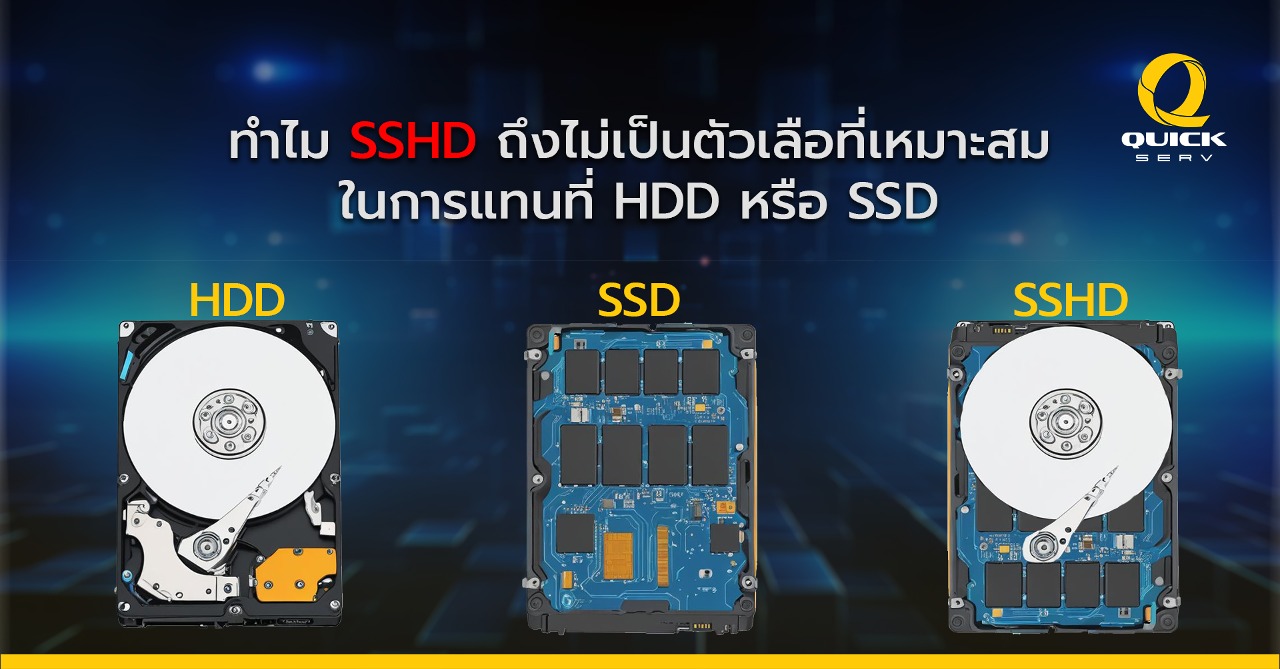 สรุปแล้ว แม้ SSHD จะเคยเป็นความพยายามในการสร้างทางเลือกที่ลงตัวระหว่าง HDD และ SSD แต่ด้วยการพัฒนาอย่างรวดเร็วของเทคโนโลยี SSD ทั้งในด้านราคาและประสิทธิภาพ ทำให้ SSHD ไม่สามารถครองตำแหน่งที่โดดเด่นในตลาดได้ ปัจจุบัน ผู้ใช้ส่วนใหญ่มักเลือกใช้ SSD สำหรับระบบและโปรแกรมหลัก และใช้ HDD สำหรับเก็บข้อมูลขนาดใหญ่ ซึ่งเป็นวิธีที่ให้ประสิทธิภาพและความคุ้มค่าสูงสุดสำหรับผู้ใช้ทั่วไป ทีม QuickServ พร้อมให้คำปรึกษาเพื่อหาโซลูชันการจัดเก็บข้อมูลที่เหมาะสมที่สุดสำหรับความต้องการเฉพาะของคุณ