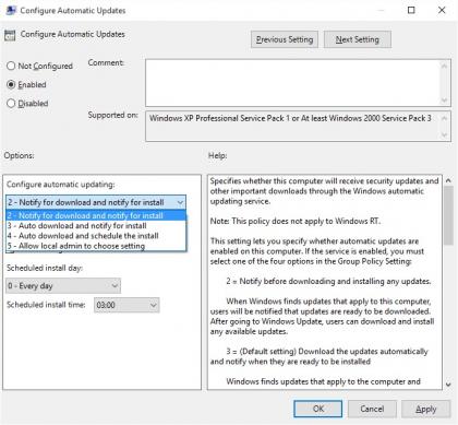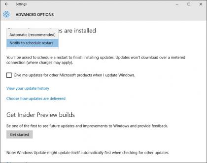 Group Policy Editor นั้นไม่สามารถใช้งานบน Windows 10 Home ได้ แต่เราขอแนะนำว่า อย่างน้อยให้คุณเปิด Windows Update โดยคลิกที่ Advanced options และเลือกที่ Notify to schedule restart จากรายการที่มีให้เลือกในหัวข้อ Choose how updates are installed และในขณะที่คุณกำลังทำรายการนี้อยู่ ผู้ใช้งาน Windows 10 ทั้งหมด อาจจะต้องการคลิกเพื่อเลือก Choose how updates are delivered และตรวจสอบให้มั่นใจว่าการอัพเดตมากกว่าหนึ่งจุดที่เลือกไว้ แต่ละอันนั้นปิดอยู่ หรือตั้งค่าไปยังเครื่อง PC บน My local network