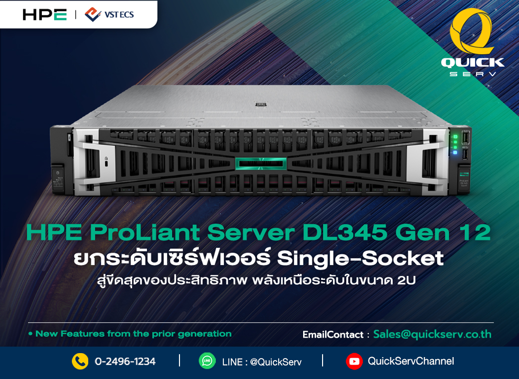 • HPE ProLiant DL345 Gen12 ยกระดับเซิร์ฟเวอร์ Single Socket สู่ขีดสุดของประสิทธิภาพ พลังเหนือระดับ