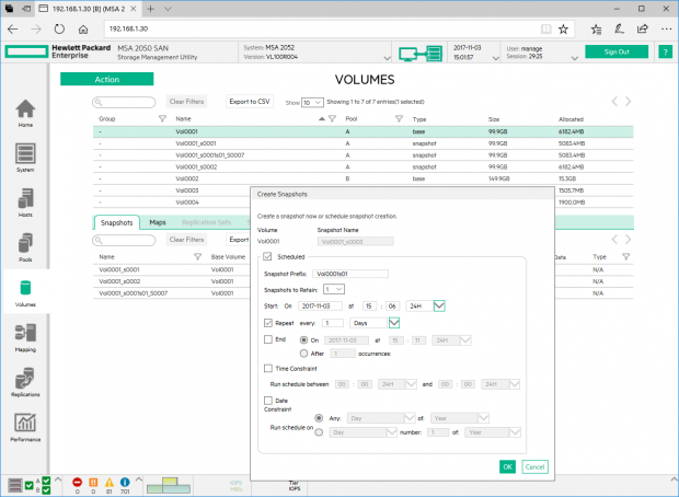 ก่อนหน้านี้ คอนโซล SMU ให้การรองรับเฉพาะ Snapshots ของ Virtual Volumes เท่านั้น แต่ได้รับการอัพเดตเพื่อให้รวมอยู่ในตารางเวลา โดยที่คุณยังสามารถสร้าง Snapshots ได้ตามความต้องการ และในขณะนี้ คอนโซลยังอนุญาตให้คุณกำหนดให้พวกมันทำซ้ำได้บ่อยในทุกๆนาที, การทำ Daily Time Window และการตัดสินเพื่อทำการเลือกเก็บ ได้ถึง 16 Snapshots