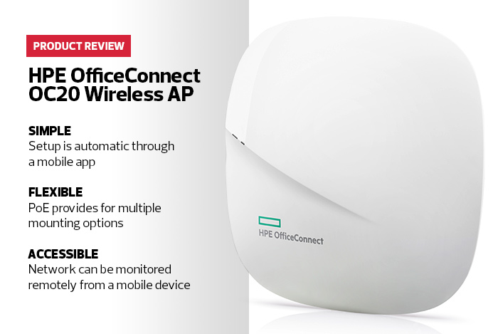 ส่วนหนึ่งของระบบ OfficeConnect นั้น อุปกรณ์รับสัญญาณ HPE OfficeConnect OC20 802.11ac แบบไร้สาย สามารถติดตั้งได้ง่าย แม้ว่าไม่มีความรู้ทางเทคนิคก็ตาม แต่เพียบพร้อมไปด้วยความปลอดภัยและคุณสมบัติการควบคุมจากระยะไกลในการบริหารการจัดการ
