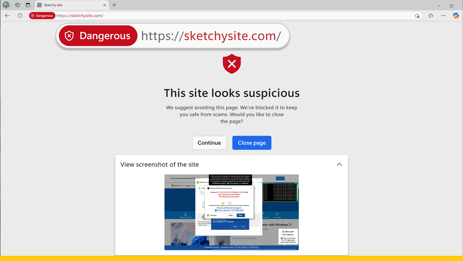 ในยุคที่ภัยคุกคามทางไซเบอร์แพร่กระจายไปทั่ว ไม่ใช่แค่ไวรัสหรือมัลแวร์เท่านั้นที่เราต้องระวัง แต่ยังรวมถึง Scareware หรือ "เว็บไซต์หลอกให้ตกใจ" ซึ่งมักแสดงผลแบบเต็มหน้าจอ พร้อมข้อความปลอมเช่น “เครื่องคุณติดไวรัส!” หรือ “โทรหาทีมซัพพอร์ตด่วน!” โดยมีจุดประสงค์เพื่อให้ผู้ใช้งานตกใจและคลิก/โทรกลับไปยังมิจฉาชีพ  Microsoft จึงได้พัฒนาเครื่องมือใหม่ในเบราว์เซอร์ Microsoft Edge เพื่อช่วยรับมือกับภัยนี้โดยเฉพาะ