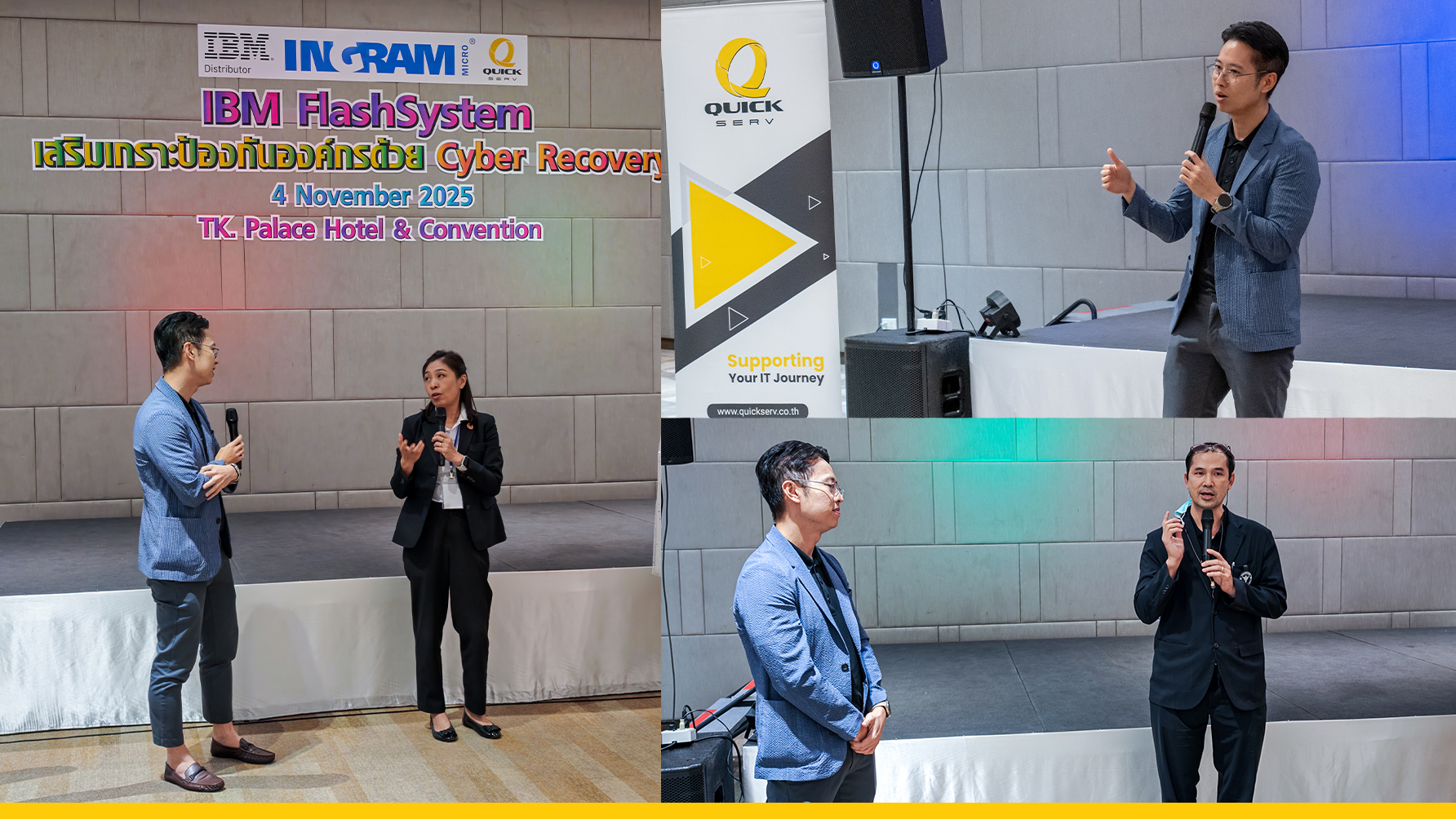 ในงานนี้ QuickServ และ Ingram Micro (Thailand) ได้นำเสนอ IBM FlashSystem — โซลูชันจัดเก็บข้อมูลประสิทธิภาพสูง ที่ตอบโจทย์ด้าน Cybersecurity, Data Protection และ AI-Ready Infrastructure เพื่อสนับสนุนการทำงานของโรงพยาบาลให้ปลอดภัย คล่องตัว และพร้อมรองรับเทคโนโลยีในอนาคต